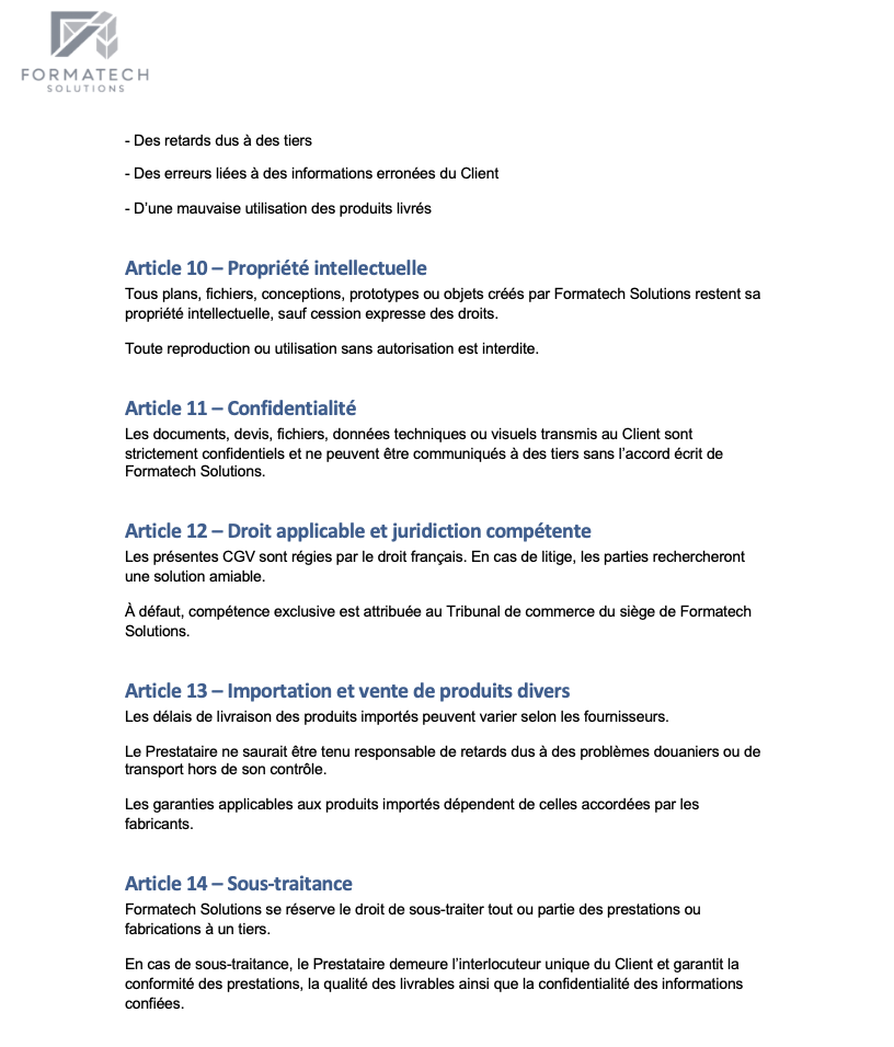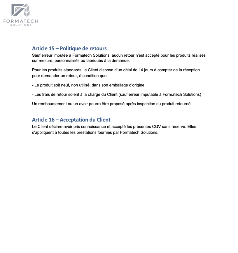 Formatech Solutions s’engage à assurer la qualité de ses prestations et traite toute réclamation dans les meilleurs délais conformément aux conditions contractuelles.